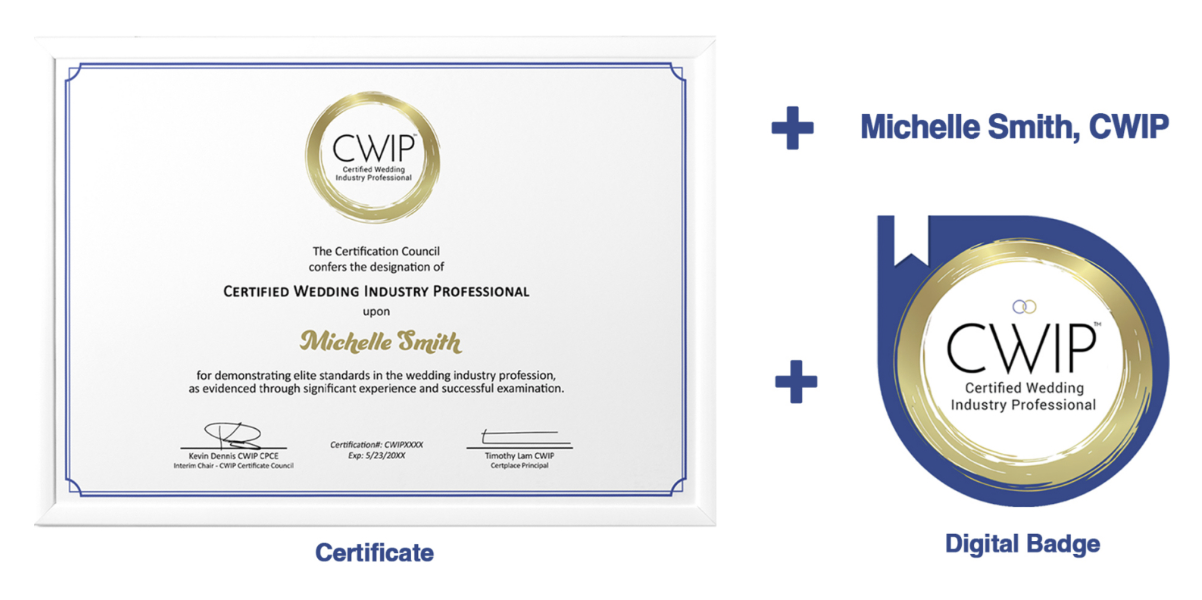 Administered by Certplace, developed and maintained by The International School of Hospitality (TISOH), the Certified Wedding Industry Professional (CWIP) credential establishes a baseline of knowledge within the community, bringing up the professionalism of the entire industry. Elevate your career with confidence and enhanced credibility.